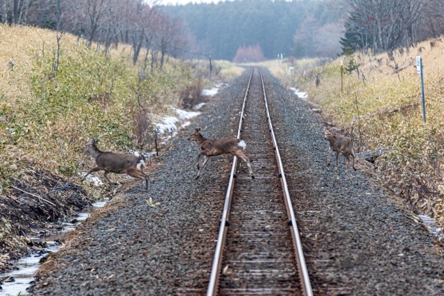 シカ等が線路内に侵入して列車が急停車したり、運休や遅延が発生したりするケースも少なくありません。